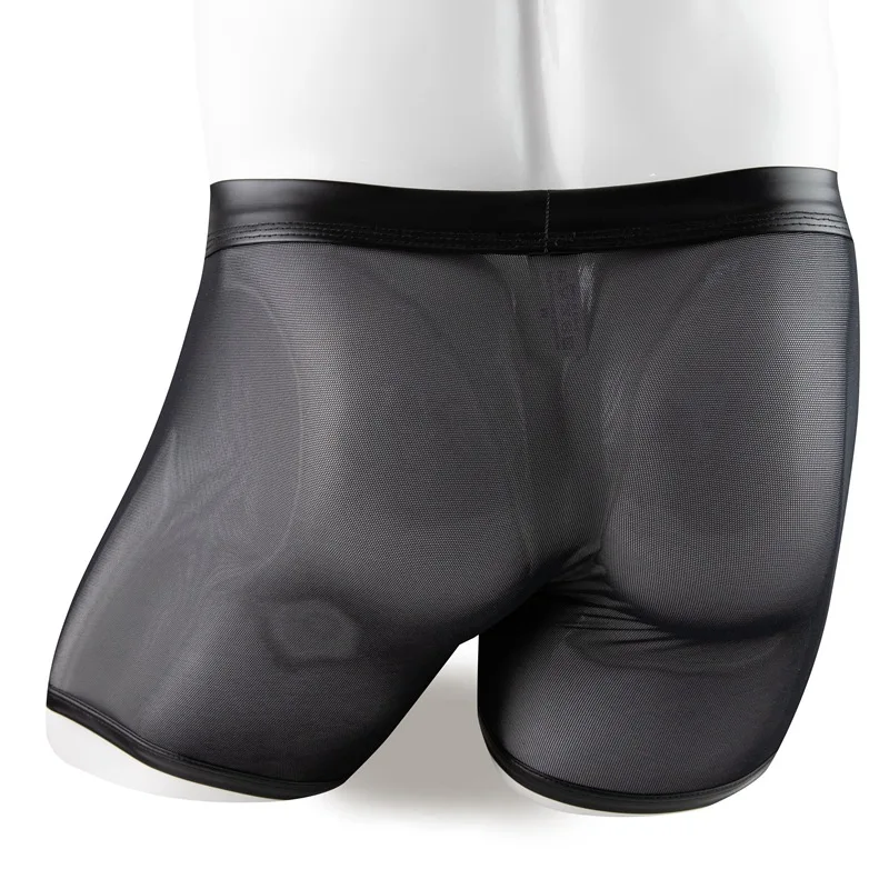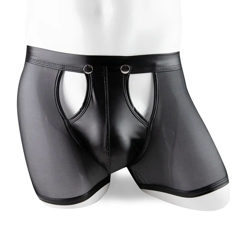 Boxer Short en Maille Transparente et Simili Cuir