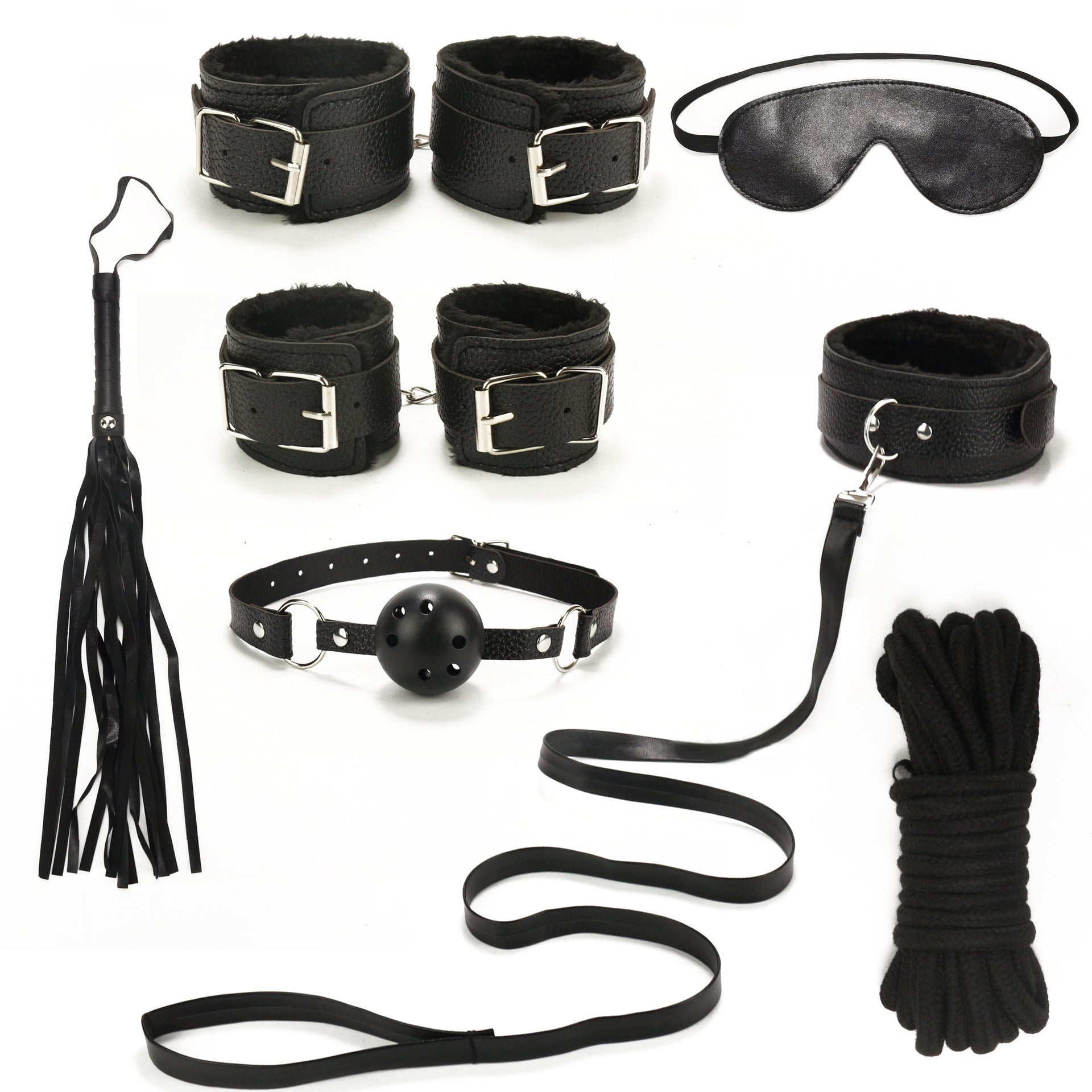 Menottes * 1 menotte de cheville * 1 collier * 1 masque pour les yeux * 1 embout buccal * 1 Raquette à plumes * 1 fouet * 1 pince à téton * 1 boucle croisée * 1 corde en coton * 1/menottes * 1 menotte de cheville * 1 collier * 1 masque pour les yeux * 1 embout buccal * 1 Fouet * 1 corde en coton * 1/menottes * 1 menotte de cheville * 1 collier * 1 masque pour les yeux * 1 embout buccal * 1 Fouet * 1 pince à téton * 1 corde en coton * 1